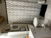equipped kitchen with an electric stove, fridge and microwave, a full bathroom and
